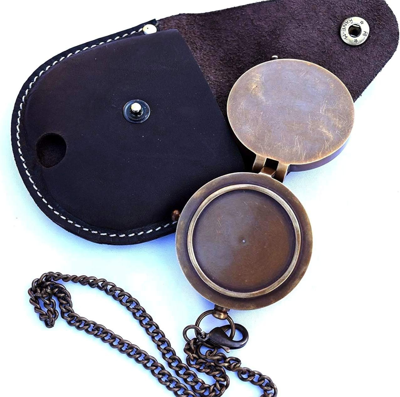 Engravable Compass Nautical Pocket Brass Compass with Leather Carry Case,Pirates Compass, Camping Compass, Gift Compass Rustic Vintage Home Decor Gifts