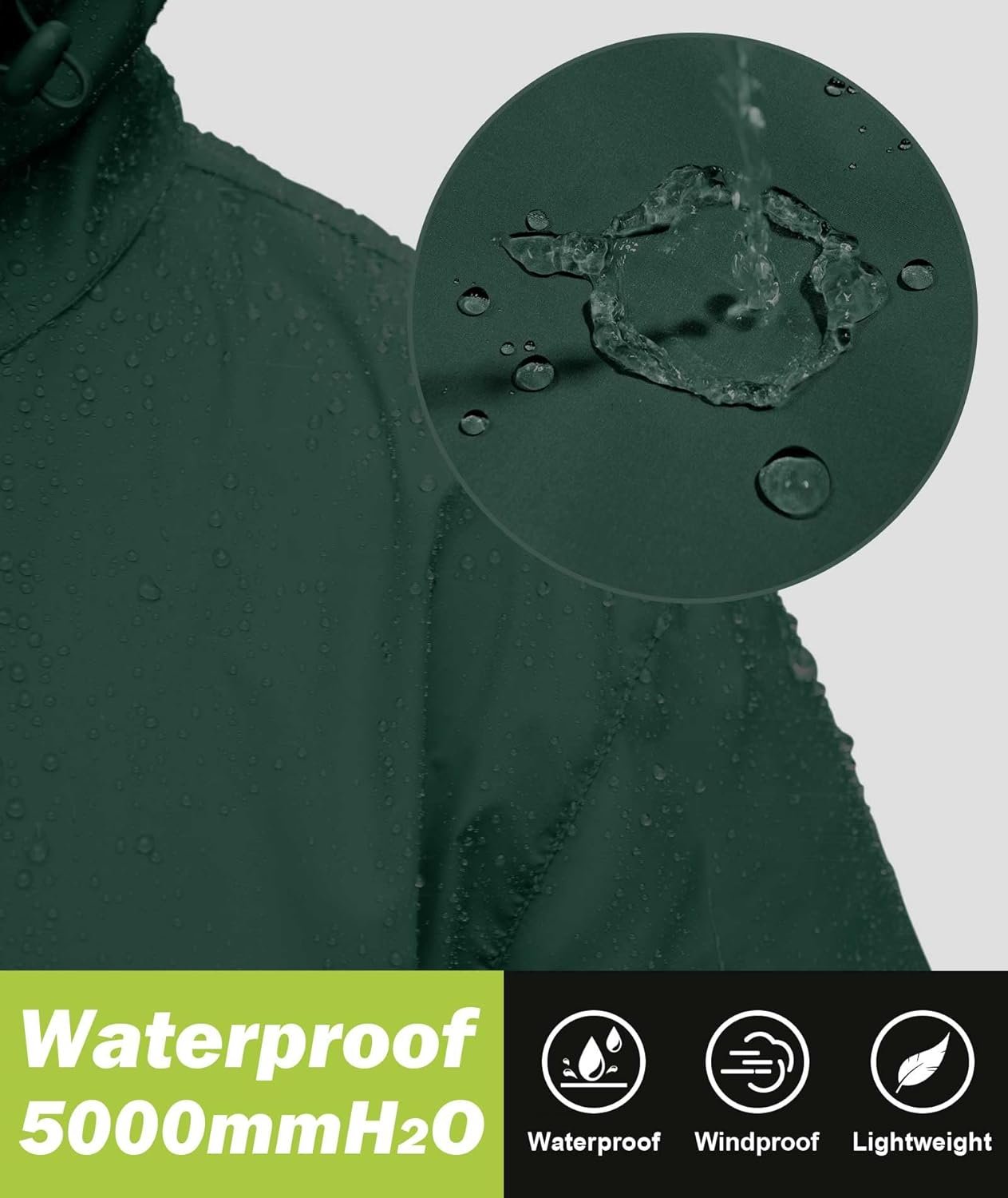 - 𝐖𝐚𝐭𝐞𝐫𝐩𝐫𝐨𝐨𝐟 𝐅𝐚𝐛𝐫𝐢𝐜:The men’s rain jacket offers excellent wind and water resistance, boasting a waterproof rating of 5000mm, making it perfect for outdoor activities
